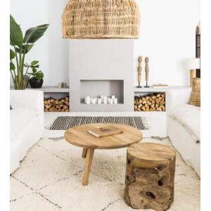 This Round recycled teak coffee table has a functional size and height that makes it suitable for the couch area or as a side table.