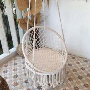 Columpio de macramé, ratán para interiores y exteriores